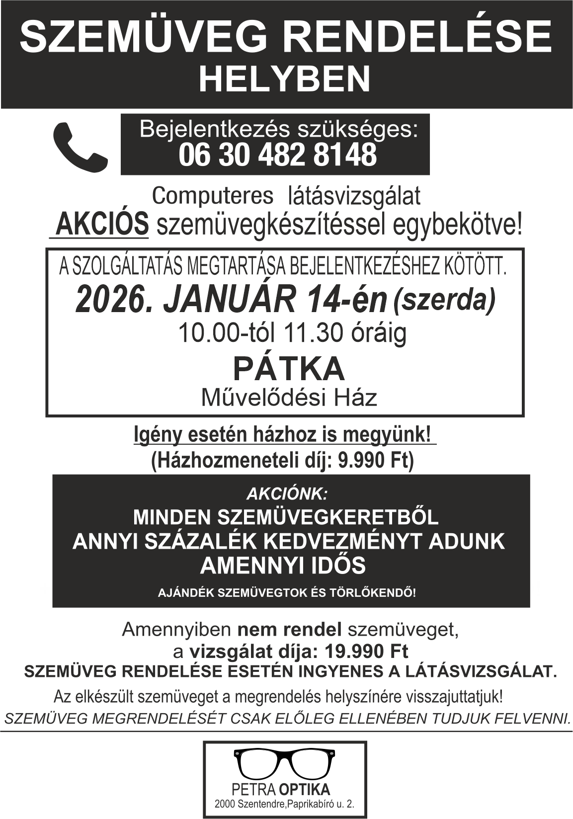 Szemüvegrendelés helyben – látásvizsgálattal egybekötve Pátkán - 2026.01.12.›››